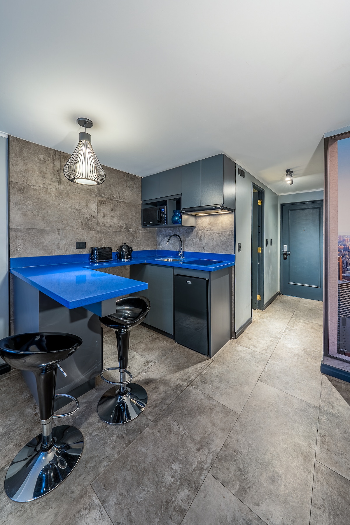 Studio, moderan dizajn, ThermoPanel za akustičnu i termičku izolaciju, klima-uređaj Smješten u najbolje ocijenjenom području u Santjagu. Na samo nekoliko koraka od stanice metroa Tobalaba, od najboljih restorana u Santjagu, od tržnog centra Costanera Center, kafića i supermarketa. Odličan Wi-Fi, bez gasnih aparata, kablovska televizija, zakrivljeni ekran od 55inča, lepo kupatilo. Sve u bezbednom delu grada sa mnogo usluga. Iz bezbjednosnih razloga, potrebno je da nam nakon rezervacije pošaljete fotografije identifikacionog dokumenta i selfija svakog gosta.