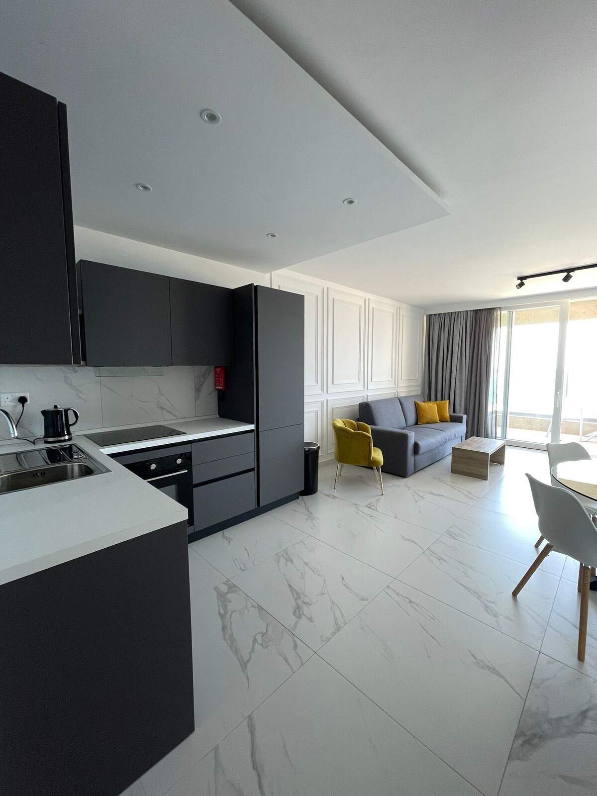 This stunning 1-bedroom apartment offers breathtaking views of the Mediterranean Sea from its prime location on Sliema's Tower Road. The modern interior features a modern sofa in the living room, perfect for lounging. The fully equipped kitchen provides all the essentials for preparing meals, while the walk-in shower offers a relaxing retreat after a long day. Enjoy the picturesque scenery and the vibrant atmosphere of Sliema from the comfort of your own balcony.