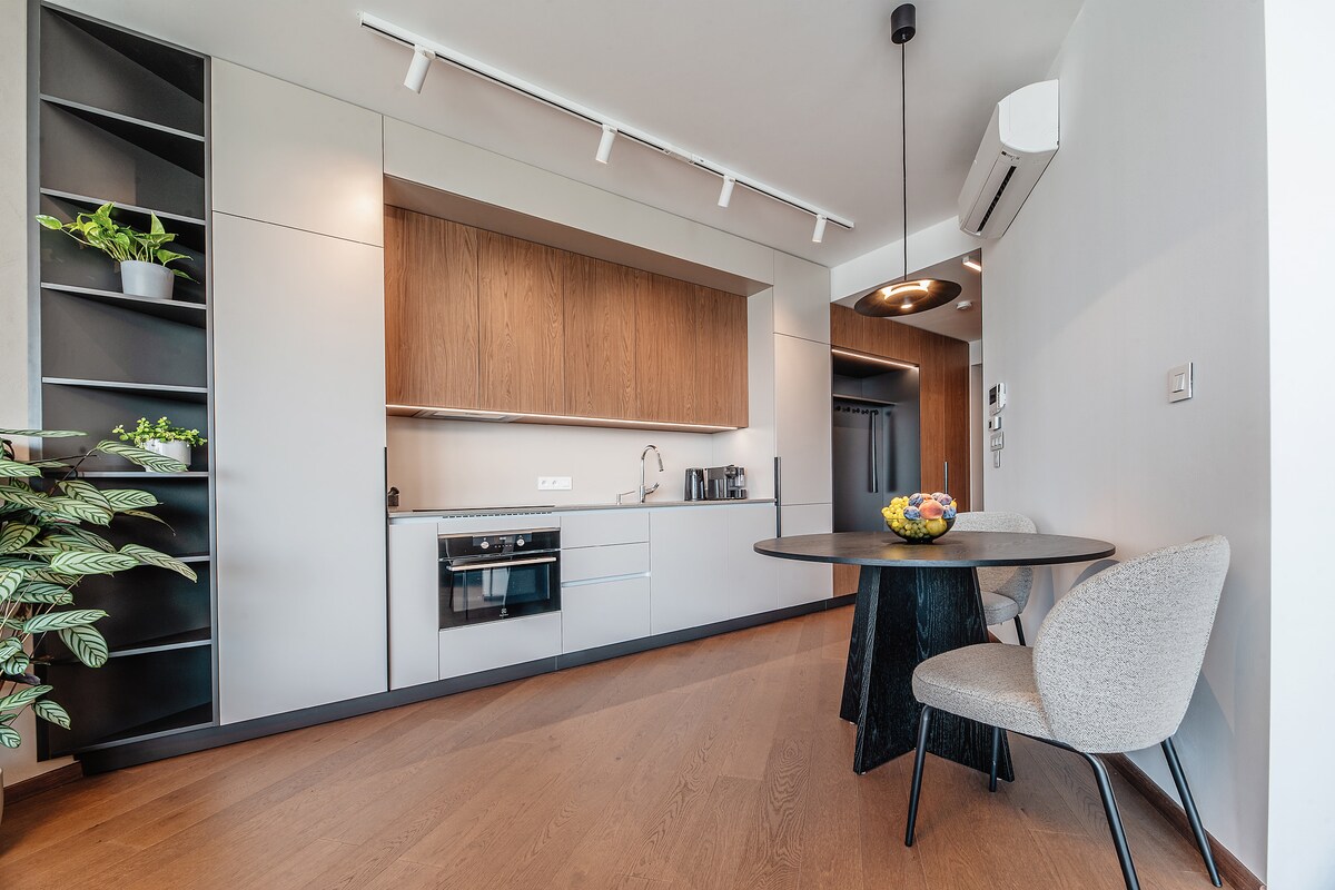 Novi, moderan i udoban stan u centru Bratislave. Rezidencija je udaljena dva minuta od Šoping galerije Eurovea, reke Dunav sa svojim predivnim šetalištem, restoranima i kafićima, kao i od novog Slovačkog narodnog pozorišta. Sama zgrada ima jednu od najboljih prodavnica sa svežim lokalnim proizvodima. Stari grad sa svim važnim znamenitostima udaljen je deset minuta hoda.