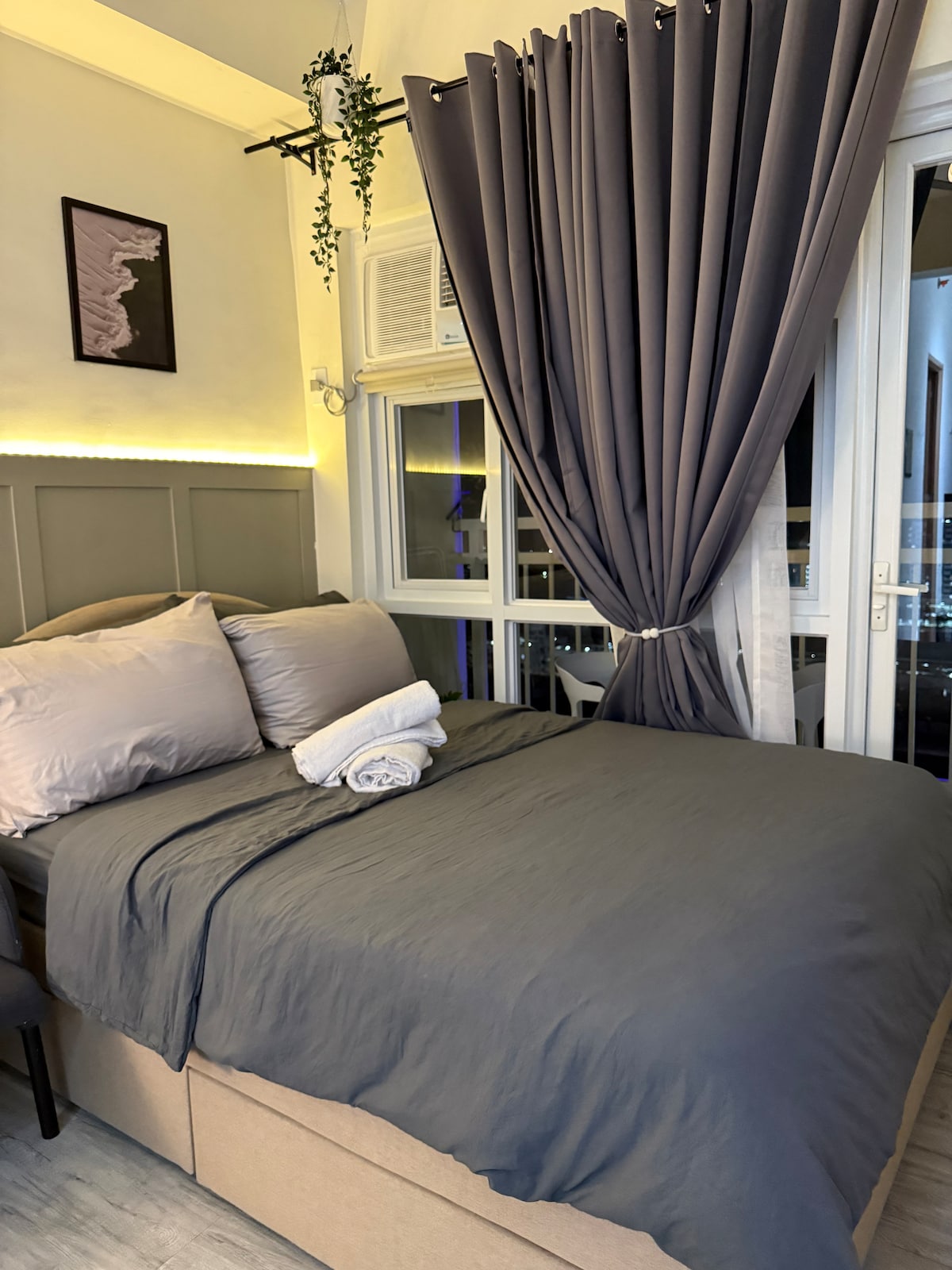 Pobjegnite u intimni spokoj Skylofta u SMDC Trees Residences, pažljivo uređenom urbanom utočištu. Doživite zasluženo utočište u ovom elegantno uređenom studio apartmanu. Jedinstveni i estetski dekor, zajedno sa šankom, igraćom konzolom i krevetom na sprat pored panoramskog prozora, pruža savršeno okruženje za neprekidno posmatranje zvijezda. Ponovo se povežite sa svojim partnerom ili podijelite ovo mirno utočište sa dragim prijateljem. Rezervišite sada i stvorite uspomene! ♥️🌥️