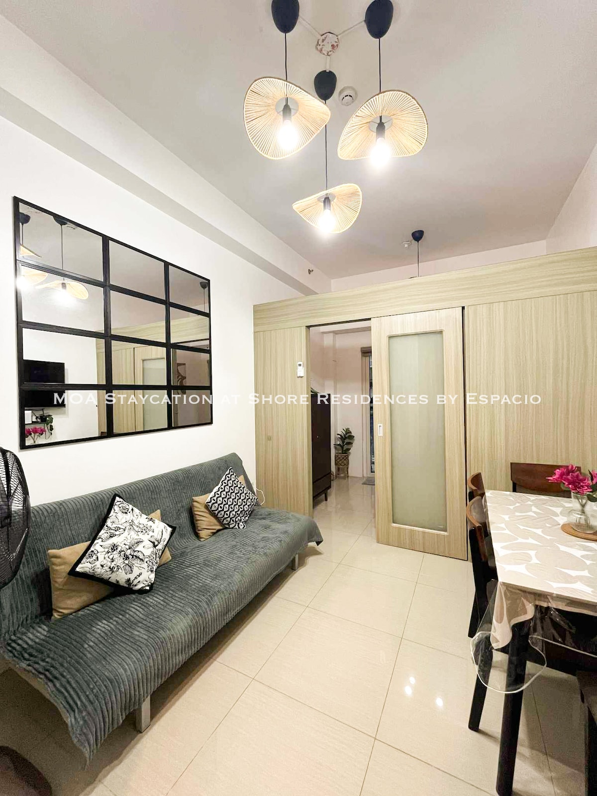 Boravite u udobnom stanu sa bračnim krevetom i opuštajućim balkonom koji je pogodan za porodični i grupni boravak. Dobro opremljen stan sa neverovatnim i opuštajućim bazenima, ukusnim restoranom i lakim pristupom rekreacionim aktivnostima, maloprodajnim objektima i važnim poslovnim centrima. Jedan od najvećih tržnih centara, SM Moa, zajedno sa SMX-om i Ikea, udaljen je samo peške. Aerodrom NAIA, Okada, Solaire, COD, PICC, WTC i Manila Bay su dostupni u blizini.