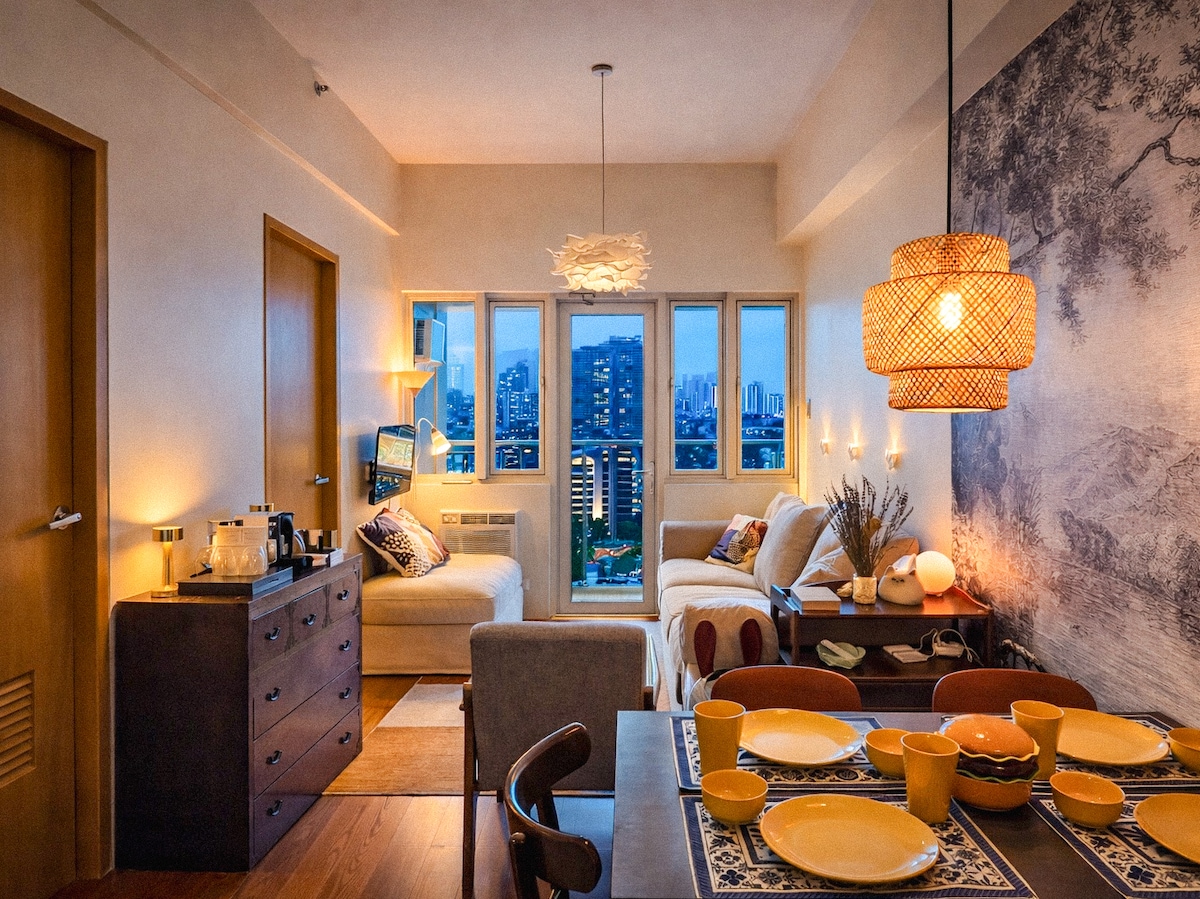 Savršeno smešten u srcu Poblaciona, restorana i zabavne četvrti Makati, naš smeštaj se nalazi na 4. spratu butik stambene zgrade sa 24-časovnim obezbeđenjem. Naš jednosobni apartman ima predivan pogled, moderan enterijer iz sredine 20. veka i sadržaje kao što su TV od 55 inča, Netflix, Wi-Fi od 150 Mbps i SMEG kuhinja. Prošetajte do obližnjih barova, opuštenih restorana i otmenih restorana. Doživite umetnost i kulturu! Savršeno odredište za parove, avanturiste koji putuju sami, poslovne putnike, kratka putovanja i odmor.