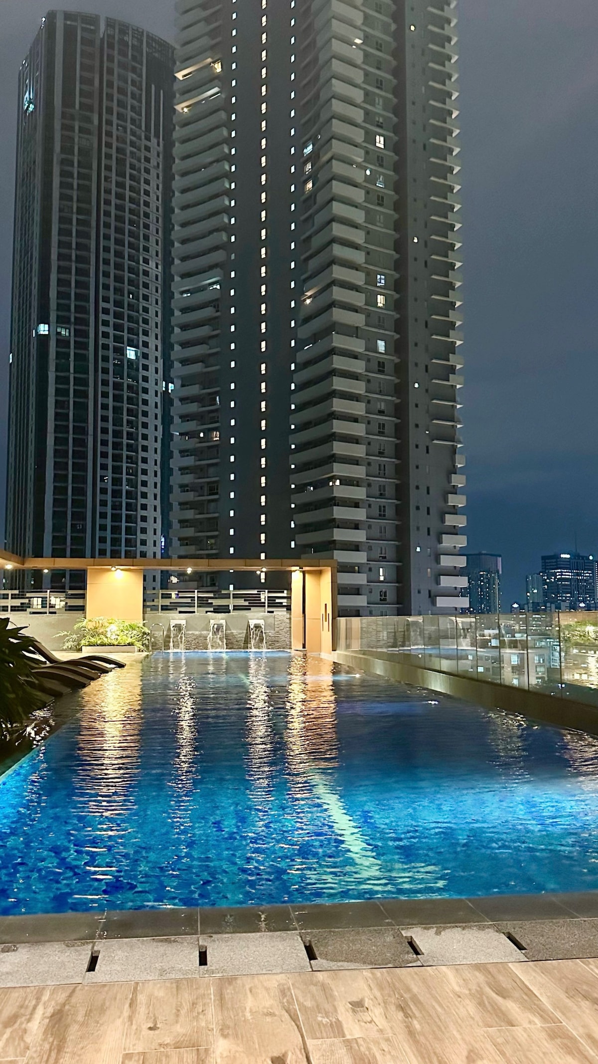 Escape to a high-floor suite with breathtaking BGC skyline views, cinematic JBL surround sound, and a 55-inch Full 4K Smart TV with LED mood lighting—your ultimate movie night haven. Take in the scenery with high-grade binoculars, then sink into the ultra-comfy Emma® Cloud-Bed for a perfect night’s sleep. Far from city noise yet close to everything, enjoy fast WiFi, Netflix, Disney+ and more! Truly a fully equipped space for a seamless, unforgettable staycation experience with Cinema 27!