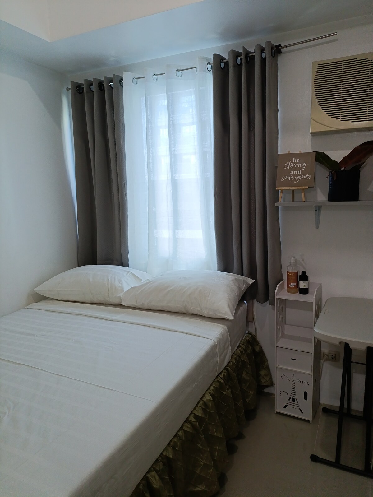 Pobjegnite u ovu šarmantnu jednosobnu jedinicu s tematikom koja se nalazi visoko u SM Light Residences Tower 1. Uživajte u pogodnostima pristupa tržnom centru, roletnama za miran san i zadivljujućem pogledu na sadržaje bazena. Bez obzira na to da li radite ili istražujete, uživaćete u brzom internetu i fiksnom telefonu, Smart TV-u (unaprijed učitanom sa pretplatama na Netflix i Disney+) i čajnoj kuhinji, dok ste na samo nekoliko trenutaka udaljeni od centralne poslovne četvrti. Udobno utočište vas čeka!