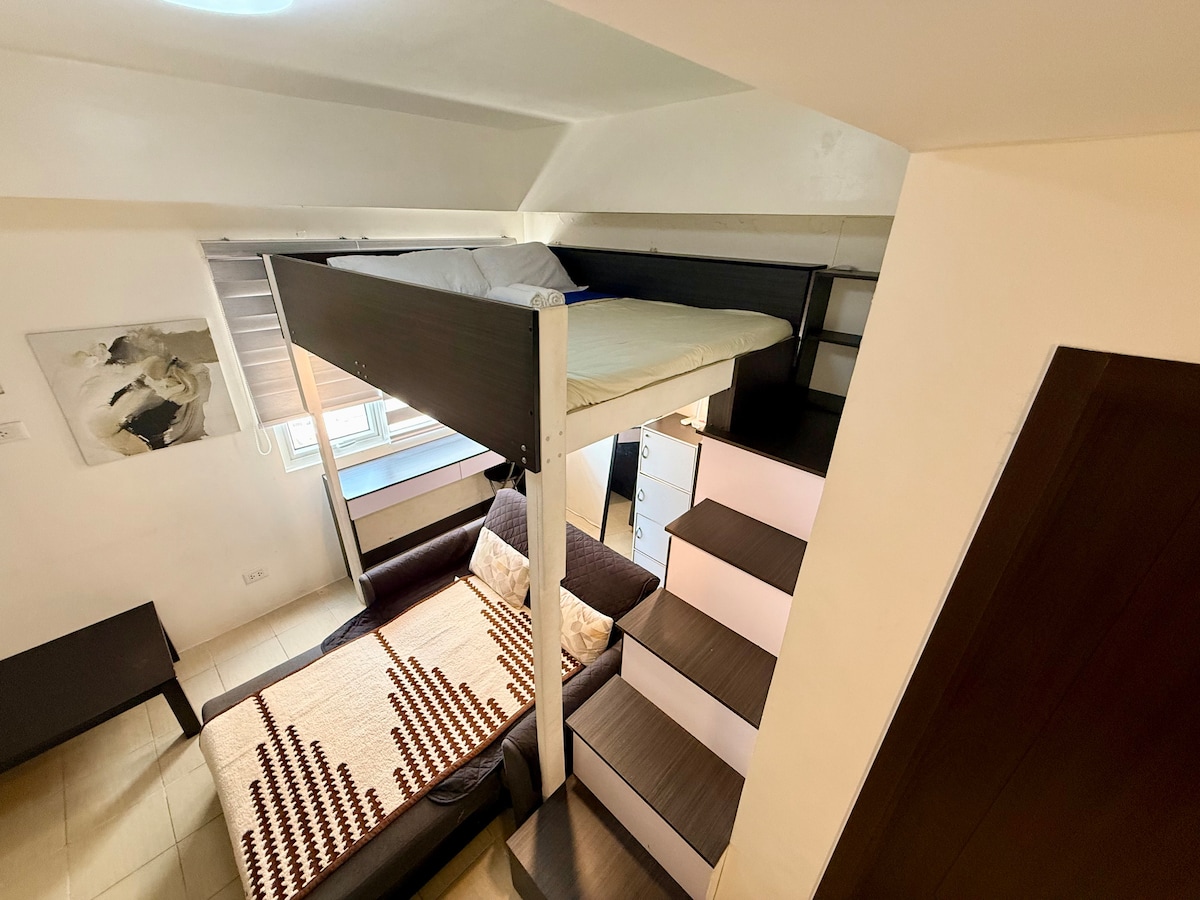 Dobro došli u naš prozračni savremeni i mediteranski inspirisani Tahanan, studio apartman od 25 m2 u Mandalujongu, nedaleko od Rokvela i tržnog centra Powerplant! Dizajnirali smo naš prostor kako bismo obezbijedili udoban boravak i snimili zadivljujući pogled na zalazak sunca, kao i pogled na Mandalujong i Makati sa našeg balkona. Bez obzira na to da li dolazite poslovno, u slobodno vrijeme ili zbog kombinacije oboje, naš dobro opremljen Airbnb je savršena baza za istraživanje živopisnih gradova Mandalujong i Makati.