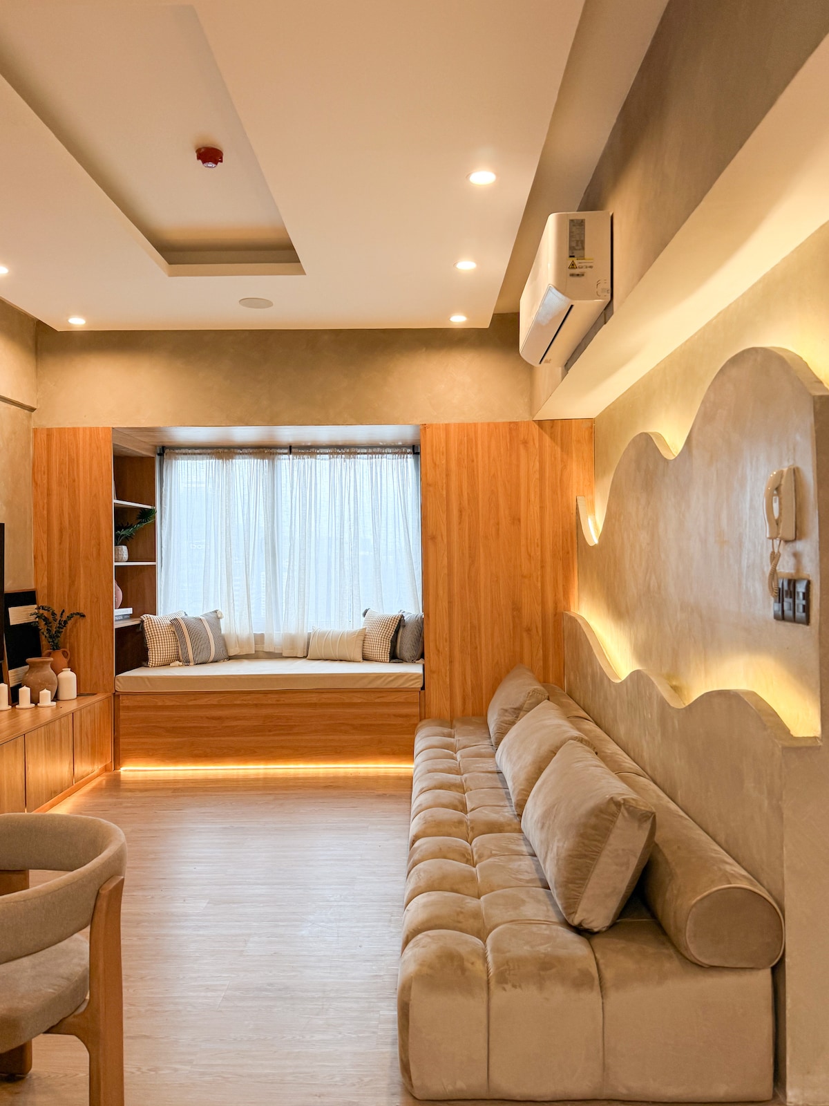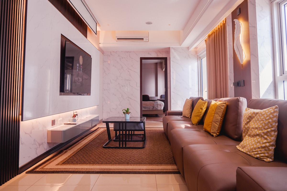 Ovaj smještaj je spoj japanskog i skandinavskog dizajna savršenog za grupu od 6 osoba. Ima 2 spavaće sobe, 1 bračni krevet, 1 kauč na razvlačenje i dvokrevetnu terasu. Dnevni boravak ima TV od 55 inča, društvene igre kao što su šah i uno i sungka. Potpuno opremljena kuhinja pruža doživljaj sličan domu. Takođe ima i barski sto i barsku stolicu, kao i balkon sa pogledom na gradska svjetla. Kondominijum ima pristup zajedničkim sadržajima (igralište, bazen, prostor za piknik, asfaltirani prostor za trčanje) i nebeskom salonu.