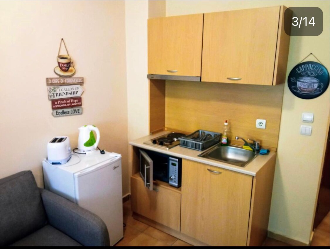 1-bedroom Aparment ( Hotel Laplandia ) with indoor fireplace. Centrally located, ONLY 200 meters away from the ski lift. You'll find an open space, including a living room with a sofa bed for extra guests & a Kitchen with a dining table. 1 bedroom with a king size double bed & TV. Also a very specious bathroom including a bathtub. You will also find restaurants & supermarkets within 100 meters reach. I hope you enjoy your stay and the amazing experiences Pamporovo has to offer you!