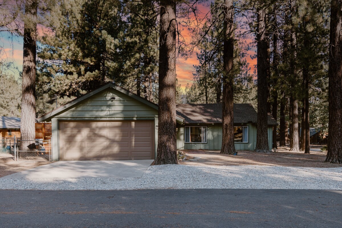 Welcome to 99 Pines Retreat – your cozy mountain getaway just 2 blocks from Snow Summit! This 1500 sq ft cabin is perfect for relaxing & making memories: Sleeps 8 | 3 bedrooms | 4 beds | 2.5 baths Private hot tub & sunset fire pit deck Game loft w/ 55” TV, arcade + foosball 2 blocks to Snow Summit - ski & ride Spacious living room w/ fireplace Fully stocked kitchen w/ outdoor BBQ Peaceful, central location near Village & lake Unwind, play & feel right at home!