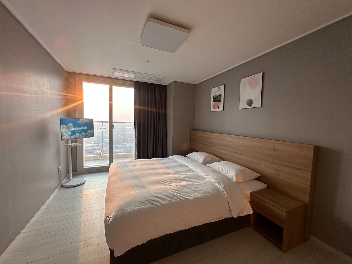 Zdravo ^ ^ Ovo je Trustay, koji živi u blizini i upravlja smještajem. Kada uđete na ulaz, prelepo more će vas dočekati kroz prozor dnevne sobe. Opuštajuće jutro sa odlaskom u 12 sati Tip sobe - 1,5 sobe (spavaća soba + dnevna soba, kuhinja + WC) Možete uživati u najboljem pogledu na okean sa 10. sprata nebodera sa pogledom na okean Možete uživati u OTT video-u kao što su Netflix i YouTube. Ispunite prostor po svom ukusu pomoću Bluetooth zvučnika Udaljen je 5 minuta vožnje taksijem od stanice KTX Mukho/stanice Donghae i autobuskog terminala Intercity. Tu su plaža Hansom i plaža udaljena 3 minuta hoda od smeštaja. U roku od 5 minuta hoda, lako je doći do restorana, prvog sprata zgrade, prodavnice opreme E-Mart 24, E-Mart-a, prodavnice namirnica, Daiso, Lotte bioskopa itd. Sadržaji su dostupni u zgradi, kao što su osmatračnica na krovu, fitnes centar i vešernica. (Delimična naknada) - Ostalo - 1. Poslaćemo vam poruku na dan dolaska (digitalna lozinka za zaključavanje ulaznih vrata, jezero i uputstva) na dan prijave. 2. Adresa objekta: 136-4, Hansum-ro, Donghae-si, Gangwon-do