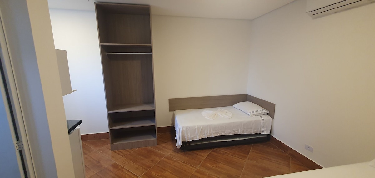 Opustite se i uživajte u boravku u našim udobnim apartmanima koji su udaljeni 4 minuta od najveće plaže u Guaruji. Naši apartmani su izuzetno kompletni: - frigobar; bračni krevet s više dušeka za jednu osobu - TV, ventilator i klima-uređaj; - Wi-Fi, - kupatilo. - utičnice 110/ 220 ✨ Posebnosti: Gostoljubivo okruženje na strateškoj lokaciji u blizini trgovine (apoteka, restoran, pijaca) 📌 stopa kombinovanja/ provjere: Fleksibilni uslovi dolaska i odlaska.