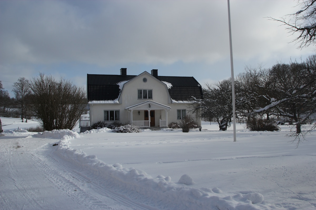 Opustite se s porodicom u ovom mirnom domu u dvojnoj kući na selu. Potpuno opremljena kuhinja. Veliki TV i novi kreveti. Oko kuće se nalaze polja i nekoliko komšija. Pogledi i okruženje su nevjerovatni. Popijte šoljicu kafe ujutro za cvrkut ptica. Svijet Astrid Lindgren 8 km Mjesto za kupanje Kröngården 4 km Mjesto za kupanje Stjärnevikskollot Jezero 450 m Ica Blizu 1 km Pica 1 km Kafić 1 km Posteljina/peškiri nijesu uključeni. Čišćenje je uključeno Nije uključeno. Dodajte posteljinu/peškire za 100 sek po osobi. Dodajte 1200 sek za čišćenje.