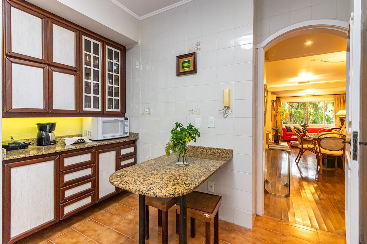 Opustite se u ovom jedinstvenom i mirnom smještaju. Privilegovana lokacija samo dva bloka od parka Moinhos de Vento (Parkao). U blizini Av Getea i Av 24. oktobra. U blizini supermarketa, barova i restorana. Klimatizovani stan, Wi-Fi internet od 500 Mb, pay TV, kompletna kuhinja, prostrani bračni krevet i hotelska soba. Garažni prostor u zgradi radi vaše praktičnosti i bezbjednosti. Kućni ljubimci su dobrodošli.