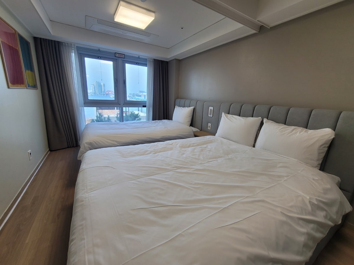 #20th floor sunrise view #Netflix #Water purifier #Family options suite #2 rooms and 2 bathrooms #High-speed terminal #Sokcho Beach