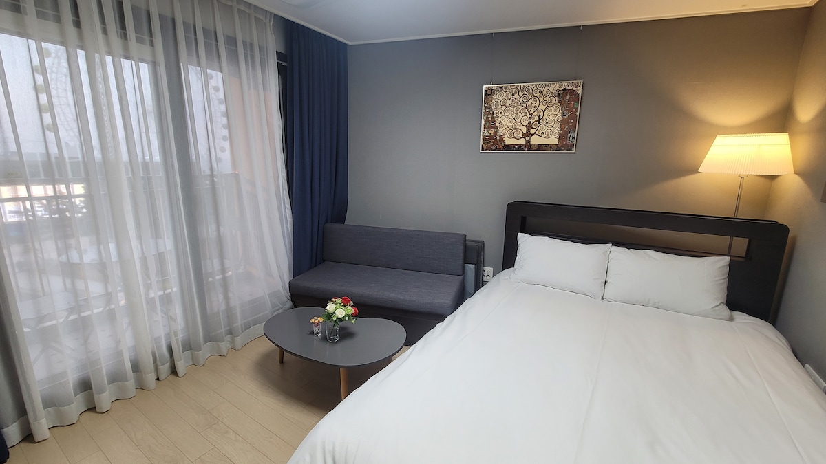 Najbolji pogled na hotel je apartman Juniora na 11. spratu od 1,5 spavaće sobe (35 metara) sa odvojenim dnevnim boravkom i kuhinjom. To je novoizgrađeni hotel u januaru 2020. godine, koji se nalazi u centru grada, ima sadržaje kao što su pijaca turističke ribarnice Sokcho, Tidal Sea, Abai Village, luka Dongmyeong, luka Sokcho, Svetionik, plaža Sokcho, jezero Čeongčo i praktičan prevoz, besplatan parking i stanica za punjenje električnih automobila. Soba je takođe veoma čista i moderna jer njime upravlja sam operater da ozdravi.