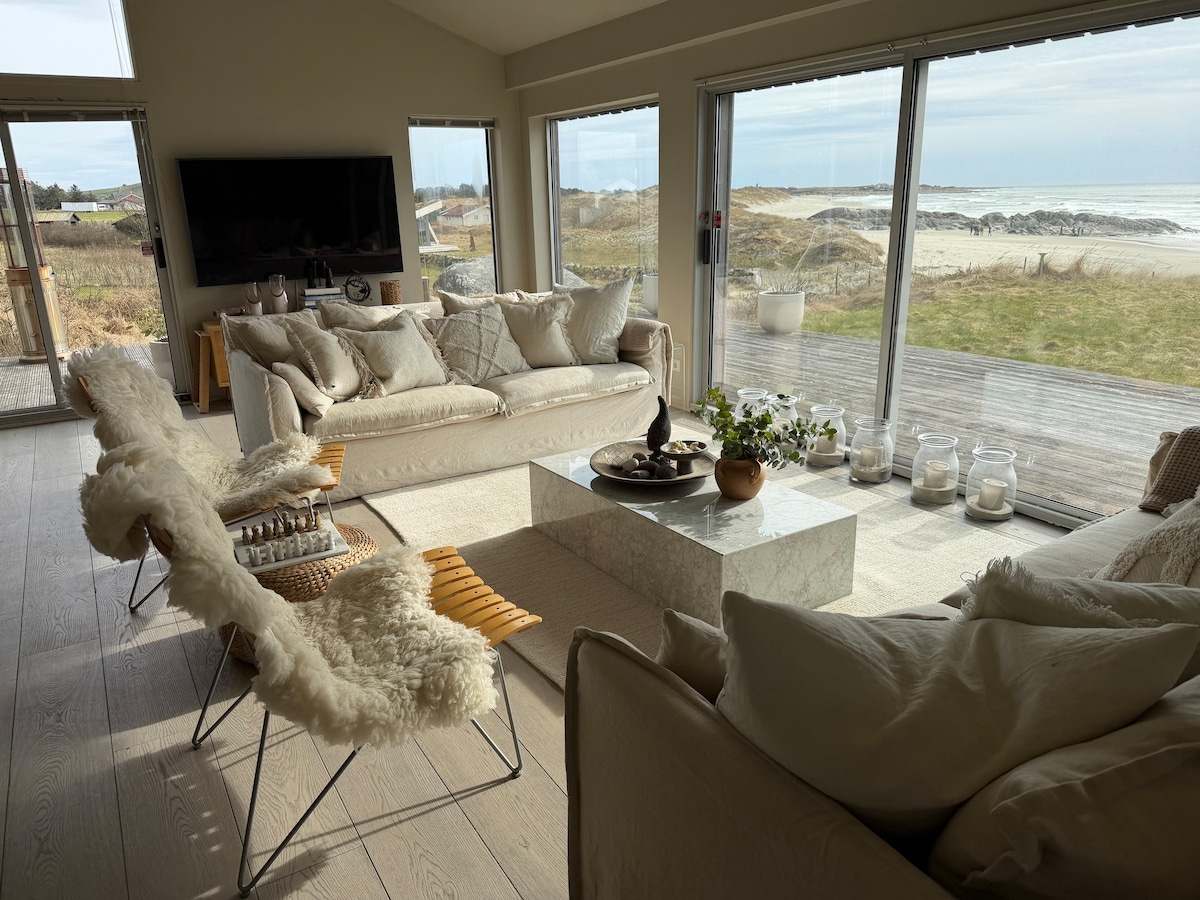 Stor hytte fra 2014 med 14 sengeplasser, carport og høy standard. 150 m fra stranda. Borestranda er 3 km lang og er en av Norges flotteste strender. 2 Flislagte bad. Separat toalett i tillegg. Stor lys stue oppholdsrom og kjøkken med spiseplass til 18 personer. 7 soverom. Peisovn. Sol hele dagen. Usjenerte terrasser. Perfekt for å oppleve Jærstrendene, dagstur til Prekestolen eller Stavanger. Mulighet for surfekurs eller leie av surfeutstyr. Egner seg for 1-3 familier, vennegjenger og grupper.