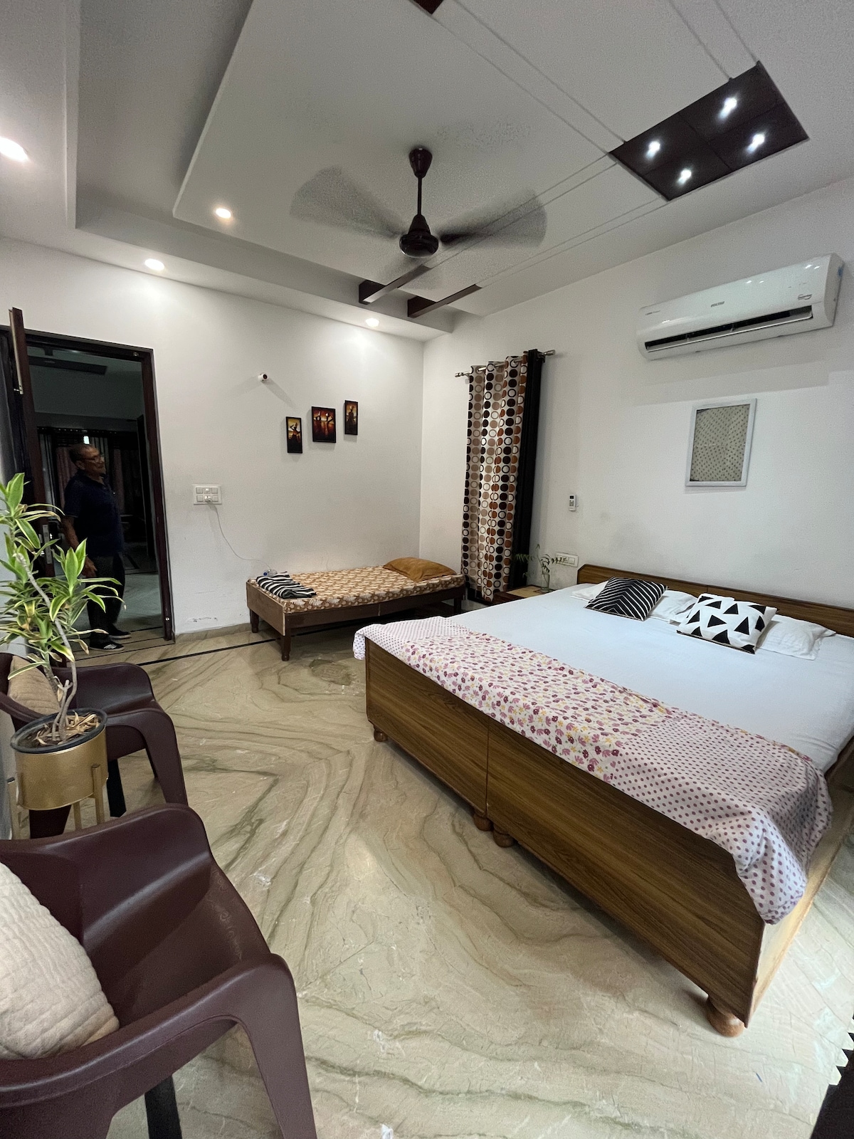 Svježe obojeno i izgleda novo. Kuhinja, toalet i spavaća soba u kući od 1,25 u uglu. Dovoljno prostora u okolini kuće. Bračni krevet (širine 180-179 cm) za najviše dvije osobe. Ova soba ima nezavisni ulaz u uglu 1.25 Kanal house u otmjenom lokalitetu u srcu Beautiful Chandigarh. Ovo područje je čisto, sasvim, uopšte nije zakrčeno. Udaljeno oko 4 km od centra grada, oko 4 km, od centra grada. Verifikujte svoj zvanični identifikacioni dokument i pošaljite ga Airbnb-u da biste mogli da rezervišete ovu sobu.