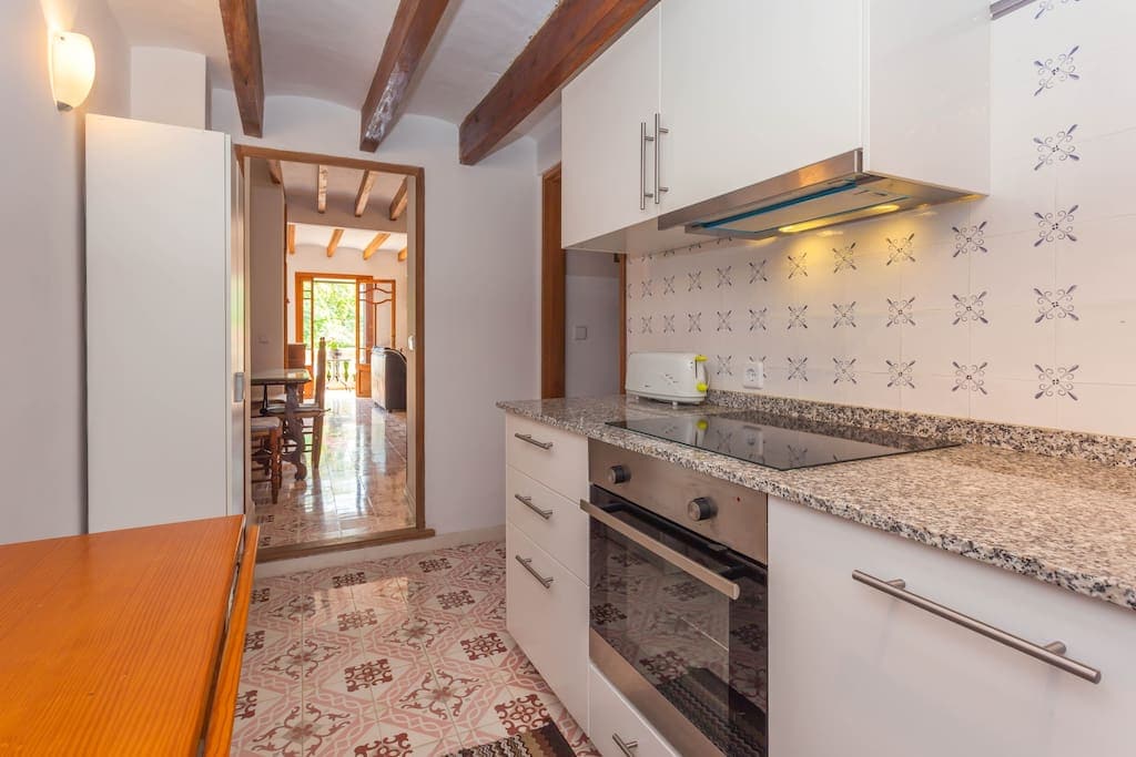 Okružena baštom, kuća je okrenuta prema velikom bazenu u mirnom okruženju s pogledom na Sijera de Tramuntana. Do centra grada možete doći pešice. Kuća ima ogroman prostor koji uključuje modernu kuhinju potpuno opremljenu, trpezariju sa dugim stolom i udoban dnevni boravak sa dimnjakom. Do 8 ljudi može udobno da boravi u kući koja ima 4 spavaće sobe, 3 kupatila i toalet. Takođe je veoma dobro opremljen (klima, grejanje,…).