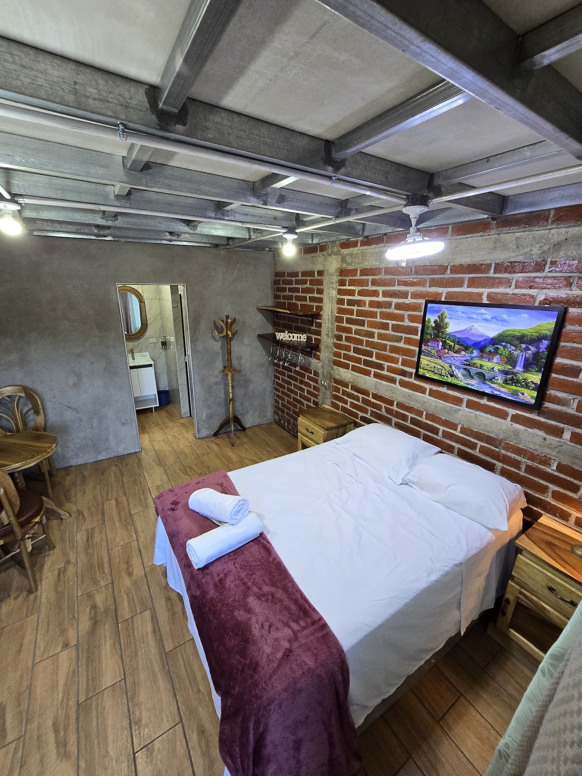 Moderan privatni apartman u Los Naranjosu sa prelepim pogledom na Serro El Agilu, privatnom terasom, dvorištem, toplom vodom, čajnom kuhinjom i uključenim doručkom. Savršeno centrirano između Huajue, Santa Ane, Koatepekea, Isalka i Ilamatepeka, plus bezbrojnih vodopada. Sveža klima tokom cele godine… klima-uređaj nije potreban. Idealno za pešače, parove i sve koji istražuju Ruta de las Flores.