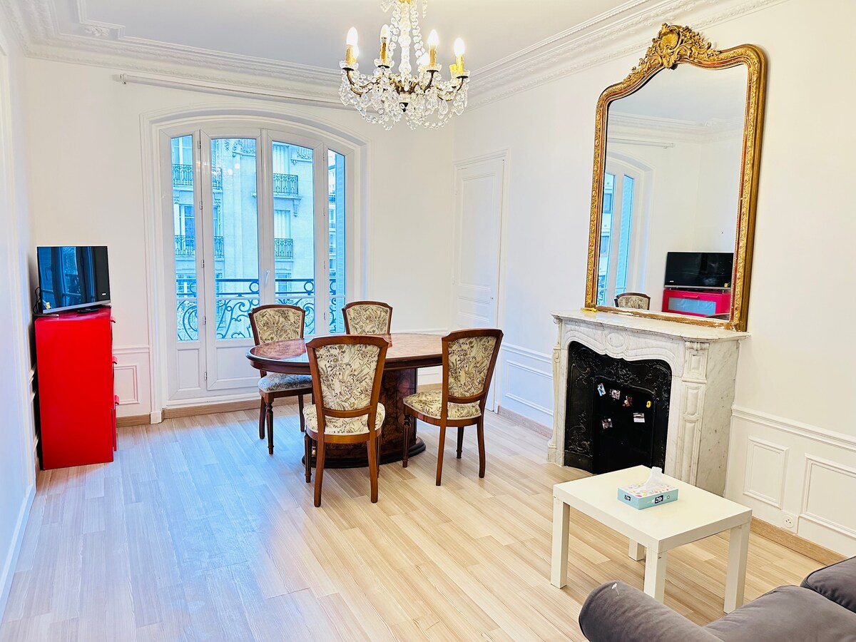 Beautiful 6 rooms apartment with wooden floors, mouldings, fireplaces and a big living-dining room with a Steinway grand piano. Very well situated in a uplifting and very practical to visit district of Paris. Just a few steps from the metro station!