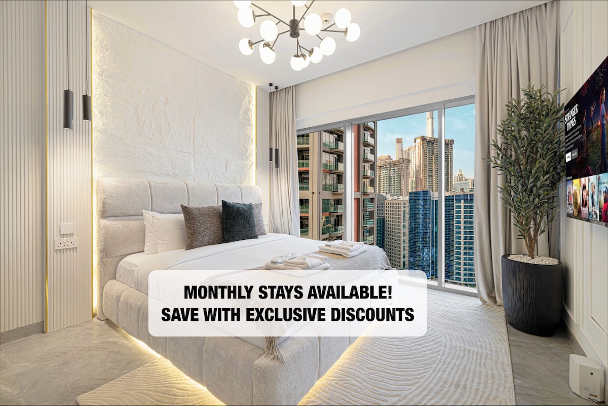 Uživajte u luksuzu u našem 2BR stanu u najljepšem mjestu u Dubaiju , koji se može pohvaliti panoramskim pogledom na Burj khalifa Cityscape i pogled na more. Opustite se i opustite u ovom mirnom i elegantnom smještaju. Iskoristite vrhunske sadržaje zgrade, uključujući preljevni bazen, teretanu, prostor za igru za djecu, bazen za djecu, višenamjensku dvoranu , teren za badminton i teniski teren ☑️10 minuta do tržnog centra Burdž Kalifa i Dubai i SHZ ☑️14 minuta do aerodroma u Dubaiju ☑️10 minuta do Utočišta za divlje životinje ☑️18 minuta do Palm Džumeire