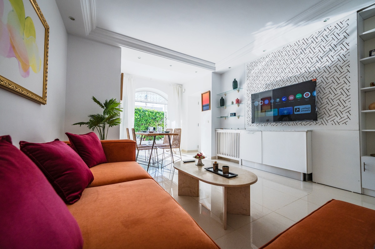 Otkrijte ovaj pravi dragulj u novoj luksuznoj rezidenciji u Gammartu, jednoj od najmodernijih gradskih četvrti u popularnom gradu La Marsa. Ovaj luksuzni nivo vrta, ukrašen profinjenošću od strane dizajnera enterijera, nudi savremeni i uredan stil. Elegantna i umirujuća atmosfera za nezaboravan boravak. Glavna prednost ovog smještaja je njegov privatni grijani bazen i 180 m2 privatnih spoljnih prostora, savršenih za sunčanje i provođenje prekrasnih večeri.