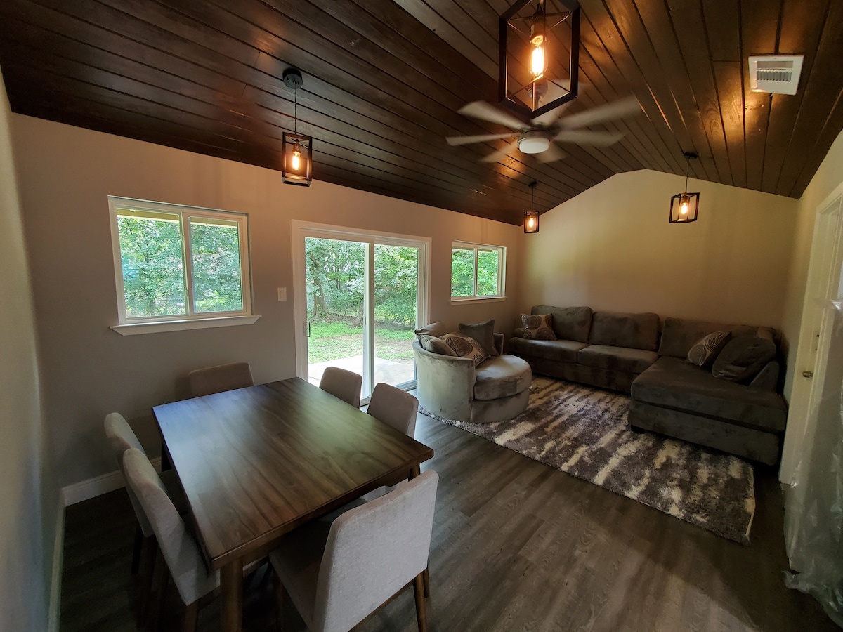 Dobro došli u ovaj elegantni 3BR/2BA smještaj. Opušteno u udobnim bračnim krevetima s debelim pokrivačima i vrhunskom pamučnom posteljinom za dobar san. Uživajte u velikom televizoru od 75inča uz Disney+. Velika trpezarija za druženje. Uživajte u hladnim noćima uz ognjište na otvorenom i veliko dvorište. Smještaj se nalazi u blizini centra Ostina, parka Zilker i jezera Taun (oko 9 miliona), 13 miliona do aerodroma. U blizini čuvenog restorana Salt Lick BBQ, pivare Jester King i Centra za divlje cvijeće Lady Bird.
