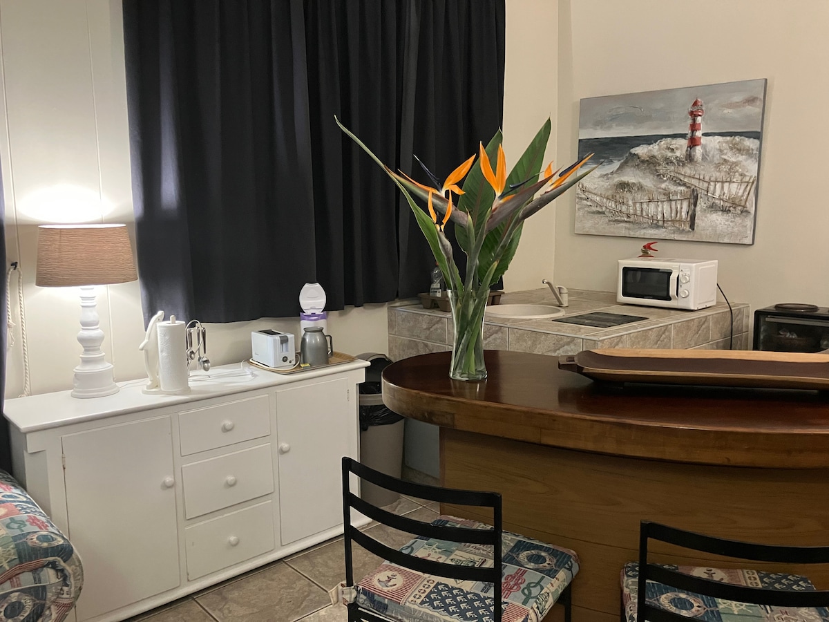 Opustite se u ovom zapanjujućem studio apartmanu otvorenog tipa u srcu Umdlotija. Budući da je udaljen samo 5 minuta od međunarodnog aerodroma King Šaka, savršen je za poslovno zaustavljanje preko noći, romantični odmor ili odmor na plaži. Probudite se uz zvuk mora i izlazak sunca iznad Indijskog okeana. Ispod se nalaze dva vrhunska restorana, kafić, porodični bar i druge korisne prodavnice. Zajednički bazen i veliki sadržaji za braai na otvorenom čine ovaj stan idealnim za kratak odmor.