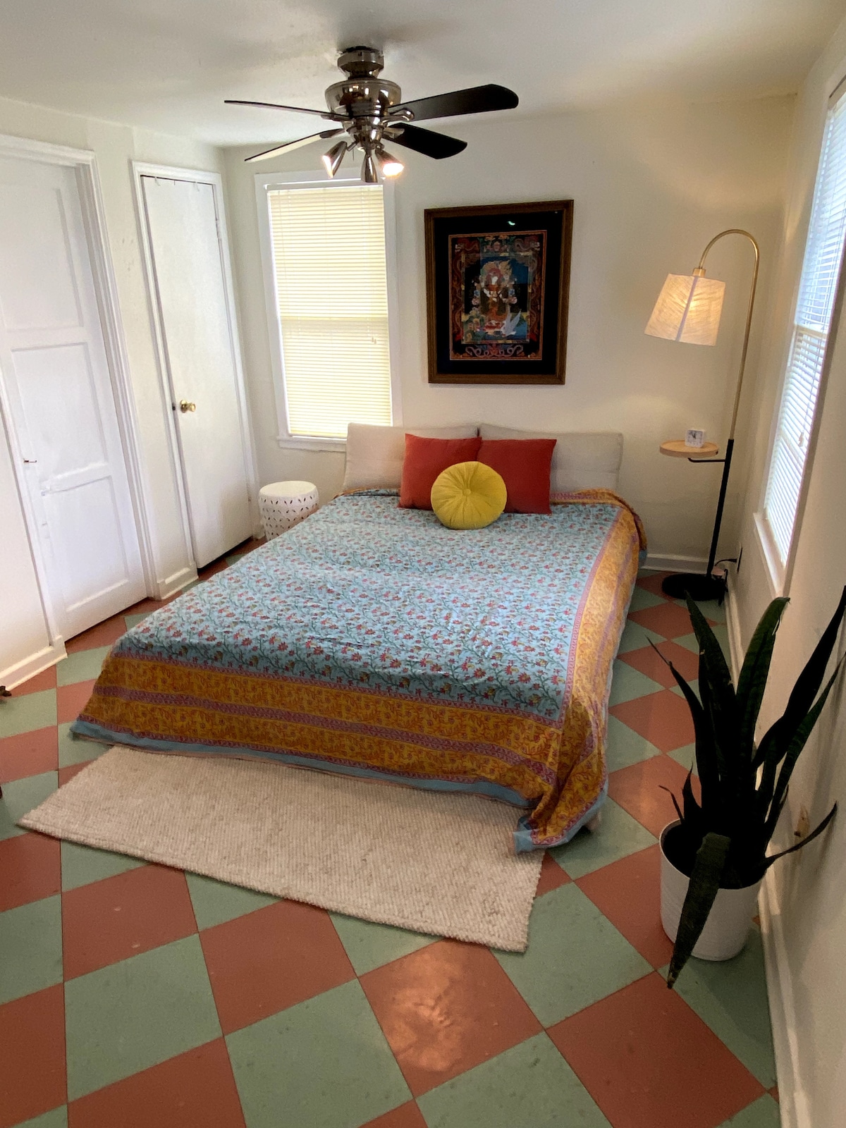 Prođite kroz jarkocrvena vrata (tradicionalno signalizirajući toplu dobrodošlicu) i uđite u studio apartman s čajnom kuhinjom, bračnim krevetom i kupatilom ispunjenim umjetničkim djelima koje su napravili vlasnik i njegovi prijatelji. Postoji Apple TV sa više opcija za strimovanje za koje možete da se prijavite. Kuća je udaljena jedan blok od kupovine i objedovanja na South Congressu. Tokom posjete možete da upoznate našeg psa Čispu. Vrlo je ljubazna i može da vas pozdravi. Ne ustručavajte se da nas obavijestite ako je