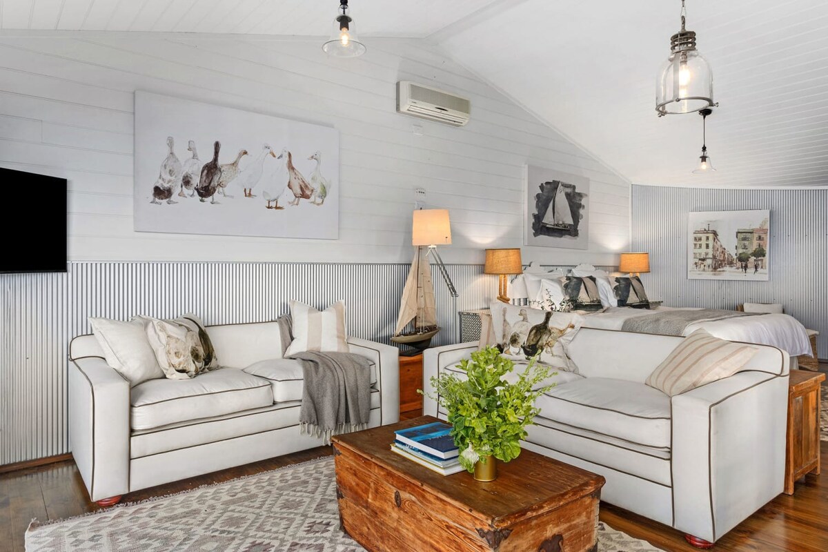 Seahouse Studio se nalazi na jednom od najspektakularnijih jedinstvenih objekata na poluostrvu Mornington. Ova preuređena kuća s baterijama nalazi se na vrhu litice, s pogledom na neprekidan pogled na zaliv Port Filip, gdje delfini često posjećuju, a CBD u Melburnu viri kroz horizont. Lutajte stazom uz plažu u sklopu objekta, vodeći vas direktno na osamljenu plažu ili provedite vrijeme na terasi uz čašu vina i uživajte u zalasku sunca. Savršeno romantično utočište za dvoje.