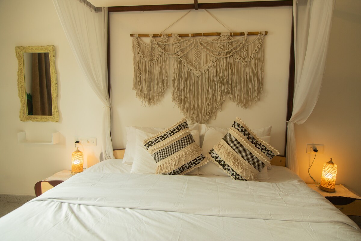 Moderan boho apartman | Na nekoliko minuta od plaža u severnom Goi. Udoban, potpuno opremljen 1BHK smeštaj u prizemlju, savršen za parove, prijatelje ili male porodice. Posebnosti: - Elegantni boho enterijeri sa toplom atmosferom - Klima-uređaj u spavaćoj sobi i dnevnom boravku za udobnost - Smart TV + brzi Wi-Fi - Opremljena kuhinja sa RO vodom, pločom za kuvanje, frižiderom i mašinom za pranje veša - Zajednički bazen (9:00 - 18:00 | kupaći kostimi su obavezni - Teretana u sklopu smeštaja je dostupna po ceni od 200 INR po osobi dnevno - Obezbjeđenje non-stop - Besplatan parking