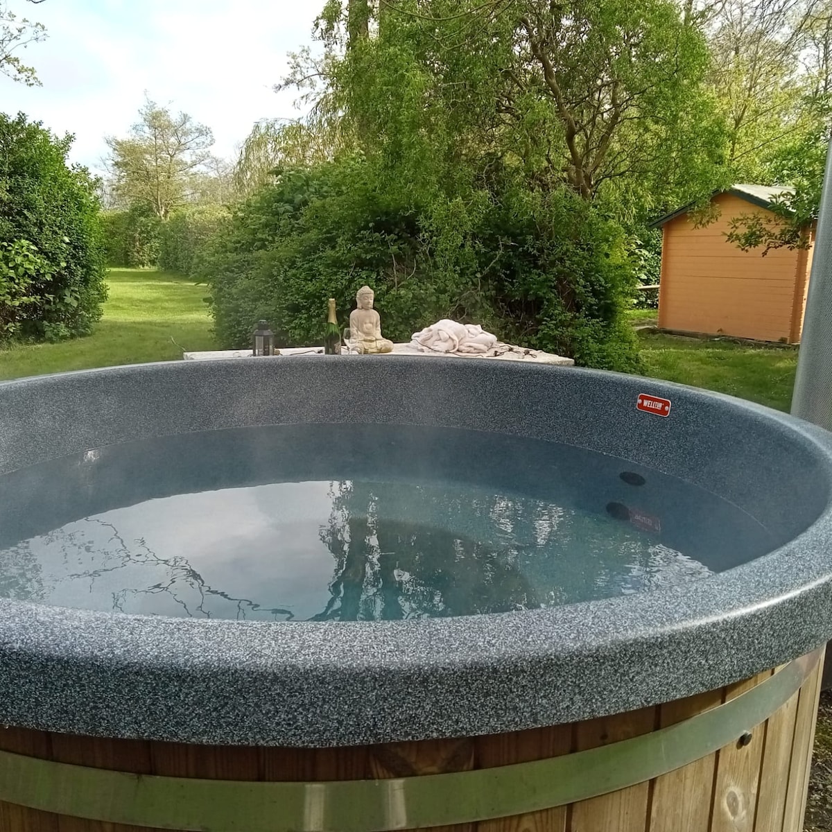 Stay on a private island near Amsterdam and wake up surrounded by nature. Our unique lotus tent combines outdoor living with the comfort of luxury glamping. A special place to slow down, recharge and truly disconnect. There is a comfortable double bed, fridge and outdoor kitchen. You share the island with two other stays, but have your own private space and toilet. Use water bike to explore the beautiful nature or reach the shore. Even restaurant and supermarket within water bike distance!