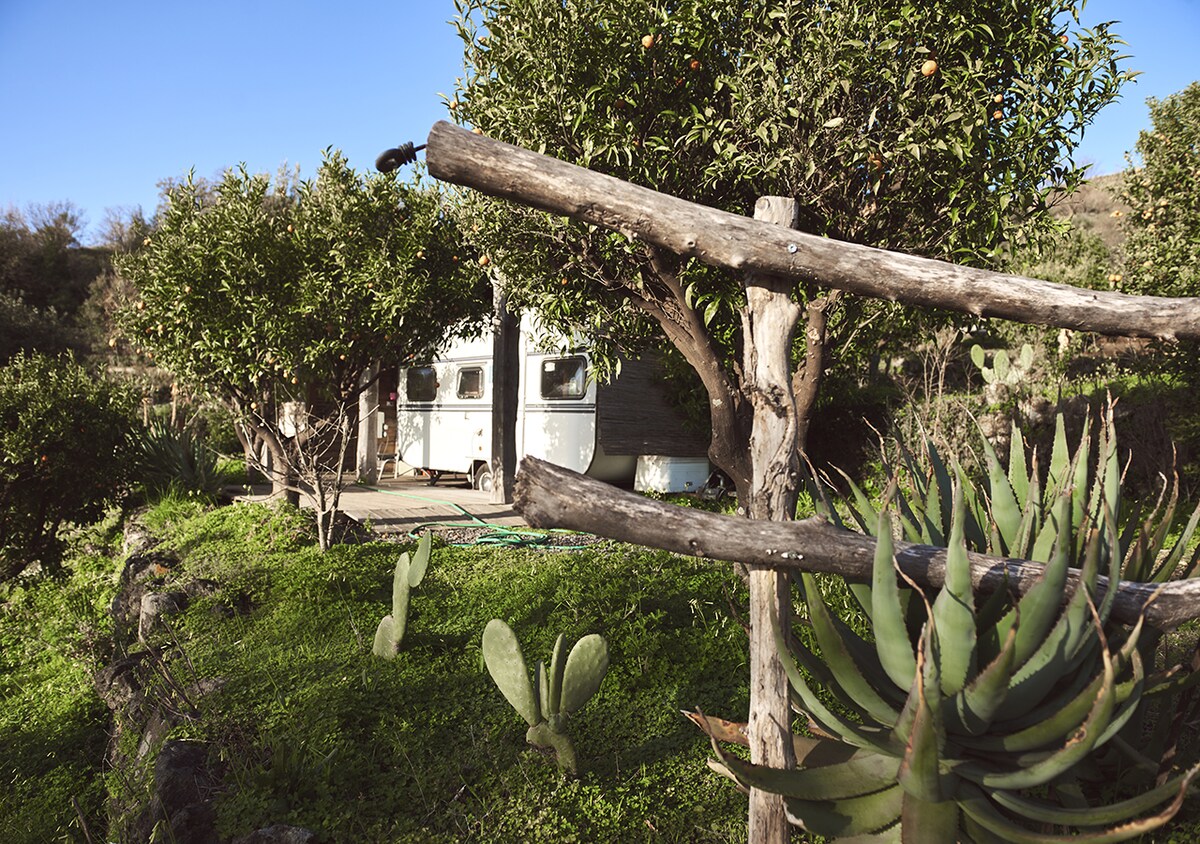 vintage Caravan in Glamping area on a Etna ecofarm