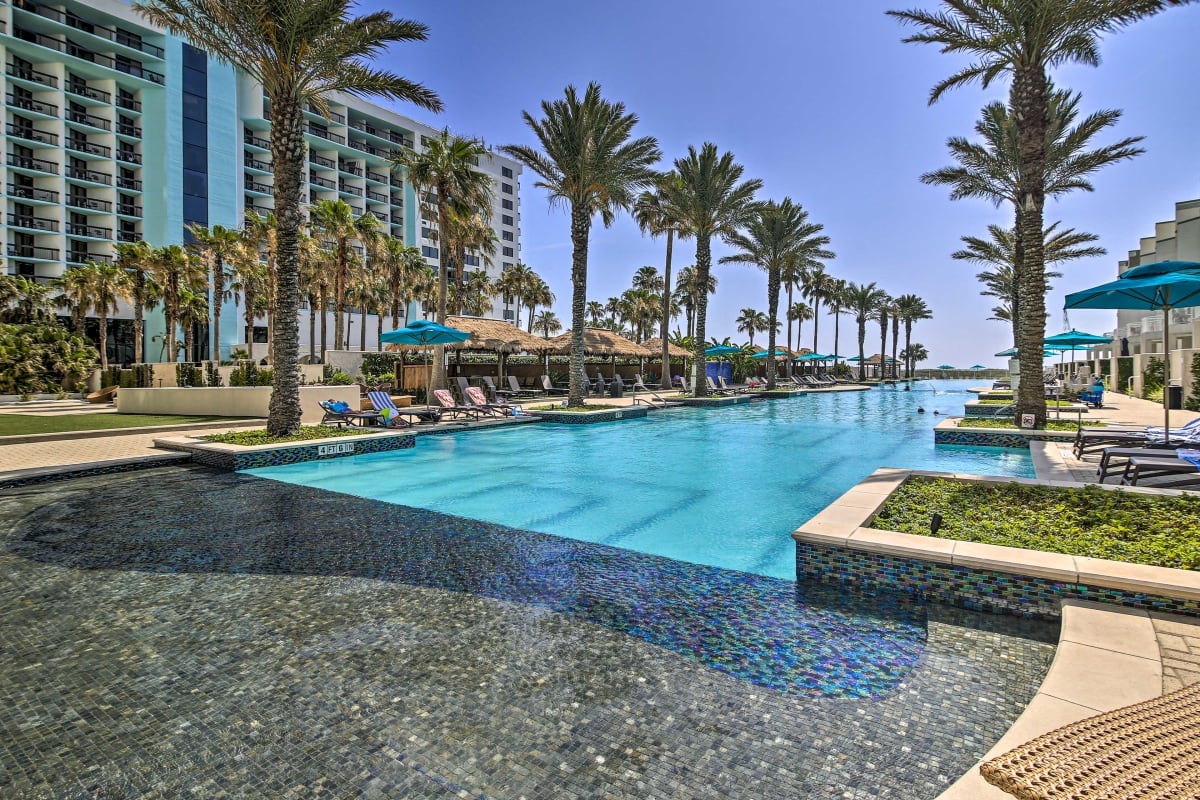 ★Delimični pogledi na zaliv Oušn N Bej! 2 minuta hoda do plaže! ★Brzi Wi-Fi, kablovska televizija bez ključa Dezinfekcija za dezinfekciju sa★ 5 zvezdica ★Ugaona jedinica sa prozorima od plafona do poda ★Mnogo prodavnica/restorana je udaljeno peške. ★Grijani bazen, hidromasažna kada N terasa za sunčanje ★Obezbeđene su stolice za plažu, peškiri za plažu, daske za telo i igračke ZA PLAŽU ★Gledajte vatromet sa svog privatnog balkona ★Motorizovane nijanse nude privatnost ★Potpuno opremljena kuhinja sa svime što vam je potrebno. ★Udoban krevet = vaše savršeno mjesto