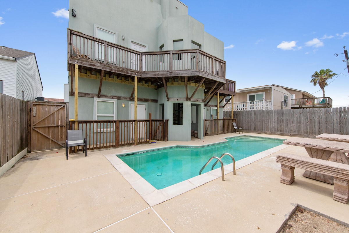 Doživite savršen odmor na plaži na ostrvu Saut Padre! Ovo prostrano, prelepo uređeno utočište sa 4 spavaće sobe i 4,5 kupatila (sve spavaće sobe imaju sopstvena kupatila) uz obalu zaliva može da primi do 12 osoba i savršeno je za porodični odmor ili odmor u grupi. Na samo nekoliko koraka od peščane obale, uživajte u privatnom bazenu, prostoru za roštilj, potpuno opremljenoj kuhinji, brzom Wi-Fi internetu i besplatnom parkingu. Uz prodavnice, restorane, barove i avanture u vodenim sportovima u blizini, nalazite se u srcu primorske zabave i sunca. Rezervišite svoje ostrvo u raju