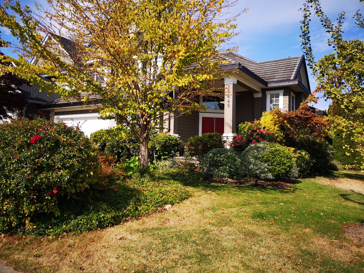 Find peace, space & spring time cozy in South Surrey/White Rock. No shared space or smoking 🚭 Well equipped with 2 comfy Queen bedrooms, private entry via front porch overlooking street-side garden; Sunflower room and hallway up, Zebra bedroom, washroom, open plan living space down *NO stress from downtown prices, traffic & stadium parking this summer. Easily Transit to BC Place for Vancouver FIFA 2026 >> Surrey, Main Street–Science World Stations and the signed “Last Mile” walk to the stadium!
