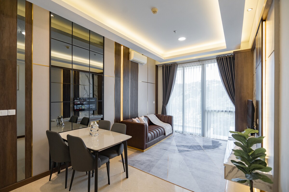 Luksuzni udoban život „Hagu“ pruža prekrasan dizajn enterijera, pogled i lokaciju koji oduzima dah. Odsjest ćete u stanu s jednom spavaćom sobom površine 58 m2 sa luksuznim sadržajima i sadržajima. Naš dnevni boravak Hagu pruža vam 65" Smart UHDTV, veliki kauč u obliku slova L, otmjene slike koje vam savršeno pružaju panoramu pogleda na CBD BSD grad. Spavaća soba „Hagu“ vas mazi bračnim krevetom i radnim prostorom sa pogledom na grad. Idealna je za poslovne rukovodioce sa dugoročnim boravcima i osobama koje traže odmor.