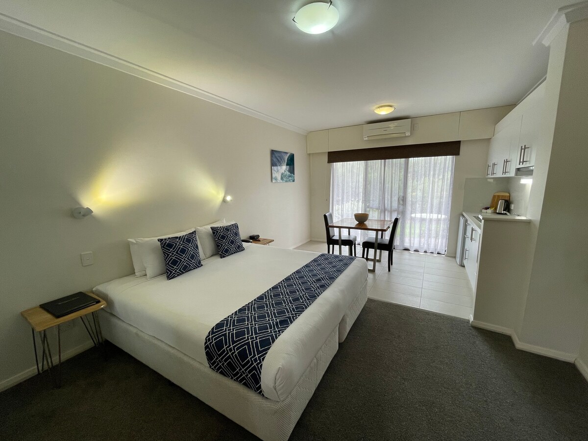 Ovaj elegantni studio apartman u Margaret 's Beach Resortu savršen je za romantičan odmor u australijskom regionu Margaret River. Odlično za parove ili samce. Sadržaji u vašem studio apartmanu: Čajna kuhinja, klima-uređaj sa obrnutim ciklusom, budilnik, tuš iznad kade, plafonski ventilator, fen za kosu, pegla i daska za peglanje, mikrotalasna pećnica, detektor dima, kompletan prostor za pranje veša, televizor. Dopašće vam se stilski uređena dekoracija ovog šarmantnog smještaja. Posteljina je obezbijeđena