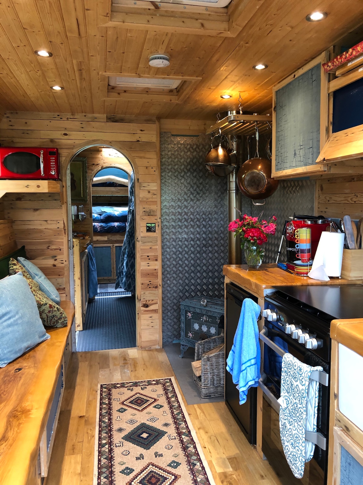 Preuređena kutija za konje sa svim sadržajima, uključujući tuš-kabinu na struju, šporet na drva, bojler i radijatore, kompletnu kuhinju i verandu koja gleda preko reke sa stolom i stolicama. Imate privatnu upotrebu hidromasažne kade koja je takođe skrovita gleda na reku. Nedavno smo zatvorili privatni prostor pored sandučeta, sa visećom mrežom, roštiljem, terasom, stolom i stolicama.