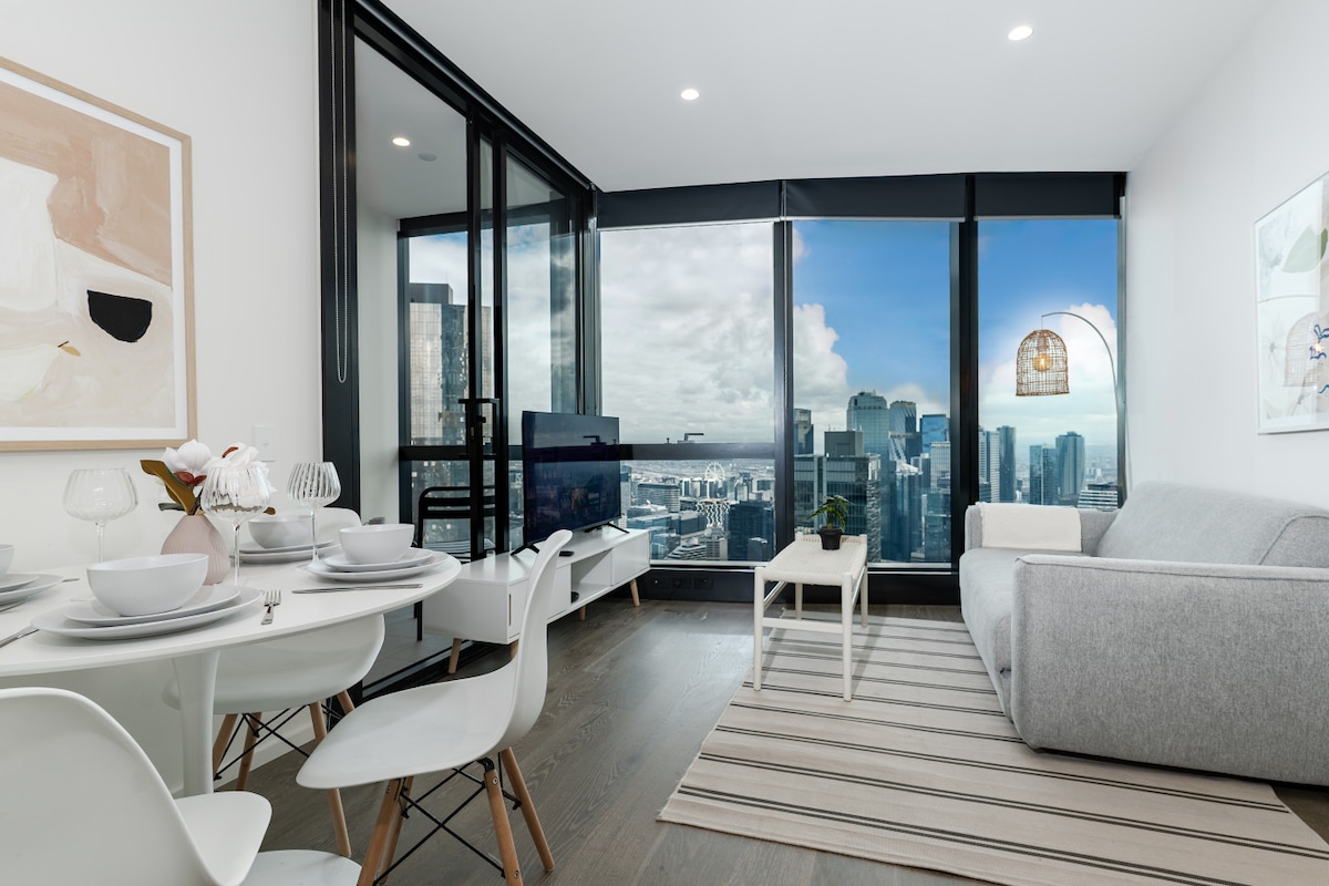 Moderan 1BR sa pogledom na grad| Blizu Krune| šetnja do CBD