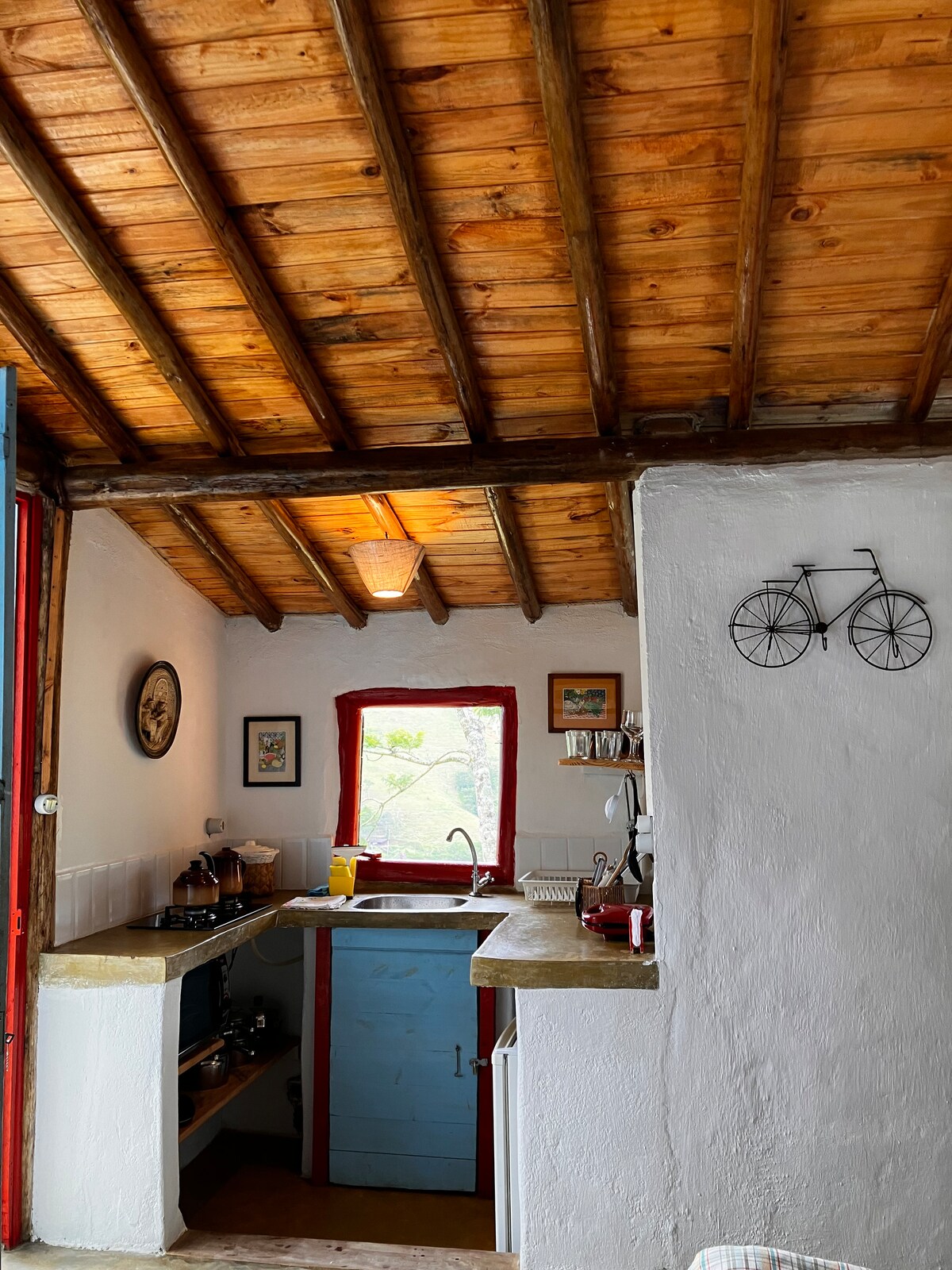 --- SADA SA BRZIM INTERNETOM --- Ova šarmantna planinska kuća savršena je za parove koji žele da pobegnu od vreve velikog grada i uživaju u prirodi San Franciska Ksavijera. Pogled oduzima dah, a dekoracija je jednostavna, ali puna šarma! Pored spavaće sobe, seoska kućica ima i malu kuhinju, dnevni boravak sa kaučem/krevetom i mali sto za dvoje. Nalazi se na 3,5 km od centra grada, gde postoje sjajne opcije za restorane, barove i pekare.
