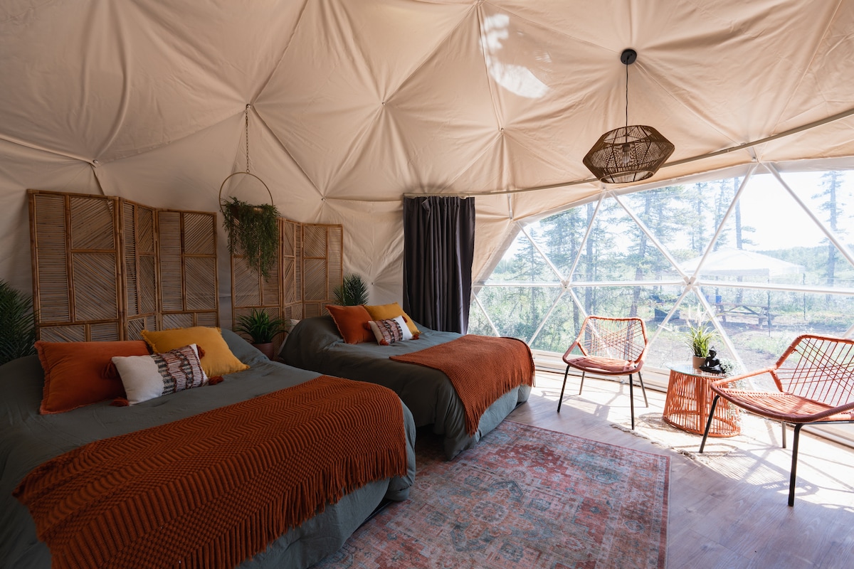 Doživite glampovanje tokom cijele sezone u netaknutoj divljini Alberte. Naš geodom uz jezero nudi nenadmašno posmatranje zvijezda i priliku da izađete iz mreže. Pozdravite se sa pakovanjem i postavljanjeom opreme za kampovanje – sve je pokriveno. Provedite manje vremena pripremajući se i više vremena uživajući u očaravajućoj avanturi koju glampovanje nudi. Unutrašnjost, plišani kreveti i mekana posteljina garantuju udobnost. Prigrlite jedinstvenost svog boravka u našoj kreativno dizajniranoj kupoli, savršenom utočištu koje obećava uspomene vrijedne Insta.