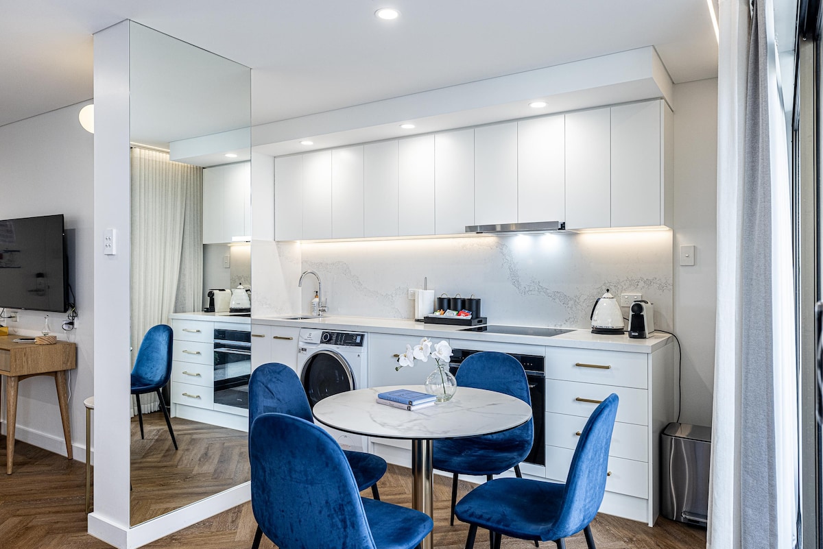 Opustite se u našoj elegantnoj CBD oazi - novouređenom modernom studio apartmanu u srcu Sidneja. Ovo sunčano utočište u unutrašnjosti grada ima luksuzne sadržaje, uključujući bračni krevet s kvalitetnom posteljinom, elegantno kupatilo s besplatnim toaletnim potrepštinama, mašinu za pranje veša, kompletnu kuhinju, Nespresso aparat, čaj, besplatan Wi-Fi i Netflix. Uživajte u nevjerovatnom pogledu na Oksford Strit dok ste na pješačkoj udaljenosti od Opere, Umjetničke galerije, Sidnejskog tornja i Kraljevske botaničke bašte. Savršeno za vaš boravak u Sidneju!
