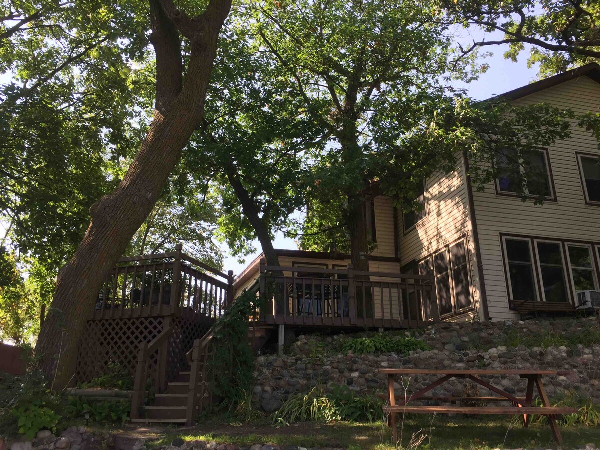 Spektakularna kuća na jezeru Locke! Uživajte u pogledu na jezero iz svih soba i otvorenog tlocrta. Opustite se na pješčanoj plaži, pristaništu, pedalini, kajaku ili daskama za veslanje. Jezero od 133 hektara (duboko 49'). Četrdeset pet minuta vožnje od gradova blizanaca. NAJVIŠE 14 GOSTIJU u objektu u svakom trenutku. MAKSIMALNO 8 AUTOMOBILA (koje sprovodi naš menadžer objekta, udruženje jezera i lokalnih suseda).