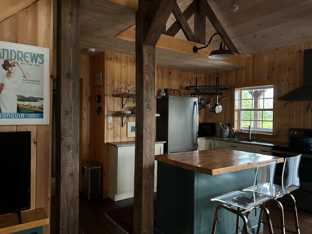 Naša rustična brvnara je savršen prostor za one koji žele da uživaju u udobnom smještaju inspirisanom prirodom sa brzim pristupom Sent Stivenu, Sent Endruzu i američkoj granici. Opustite se u hidromasažnoj kadi nakon cjelodnevnog istraživanja, a zatim uživajte u ljepoti pucketanja vatre ili se udobno smjestite unutra i uživajte u filmskom maratonu. „Naša šarmantna brvnara može da primi do 4 gosta, sa jednim bračnim krevetom i kaučem na razvlačenje. Srdačno vas pozivamo da se opustite i opustite u našoj rustikalnoj, udobnoj brvnari.