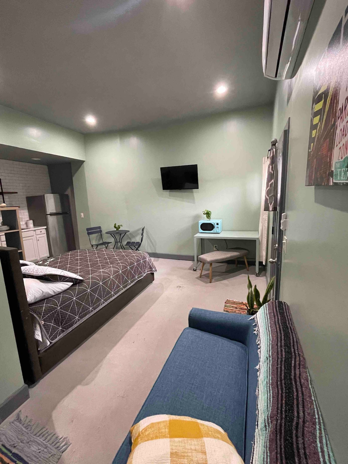 Udobna spavaća soba sa kuhinjom i kadom. Potpuno opremljen sa bračnim krevetom. Nalazi se u raznovrsnom urbanom delu grada, bez besplatnog parkinga. Savršeno za one kojima ne smetaju kratke šetnje. Stan je udaljen 3 minuta hoda od bejzbol parka/ fudbalskog stadiona Southwest University, 10 minuta hoda do kongresnog centra El Paso, zabavnog okruga u centru grada i agencije za pasoš.
