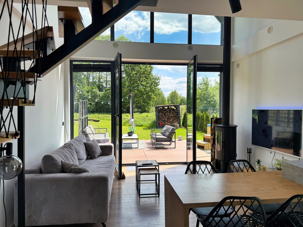Sagrađen 2024. godine, ovaj potpuno novi dom nudi savršen spoj industrijskog stila i udobnosti. Samo 20 minuta vožnje od varšavskog aerodroma, idealno je mjesto za putnike koji traže mirno utočište sa praktičnim pristupom gradu. Udobno je za 4 gosta. Živimo u susjedstvu i uvijek ćemo vam rado pomoći tokom boravka.