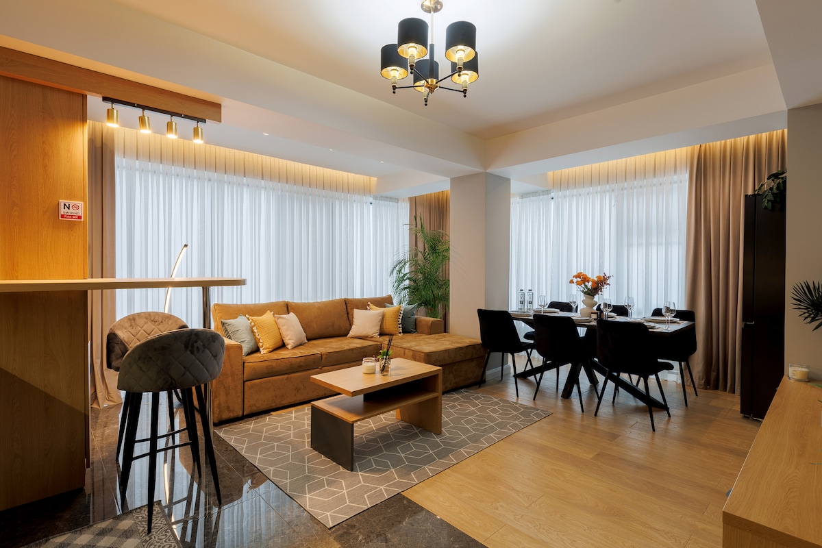 Relaxează-te într-un apartament elegant în inima Chișinăului, cu finisaje din marmură și lemn natural. Te vei bucura de o saltea premium Vi-Spring Bedstead, o cadă spațioasă și un balcon cu șemineu decorativ. Apartamentul are perdele cu telecomandă și espressor cu cafea pe boabe Blocul beneficiază de recepție și pază 24/24, oferindu-ți un plus de siguranță, confort și liniște pe durata întregii șederi.