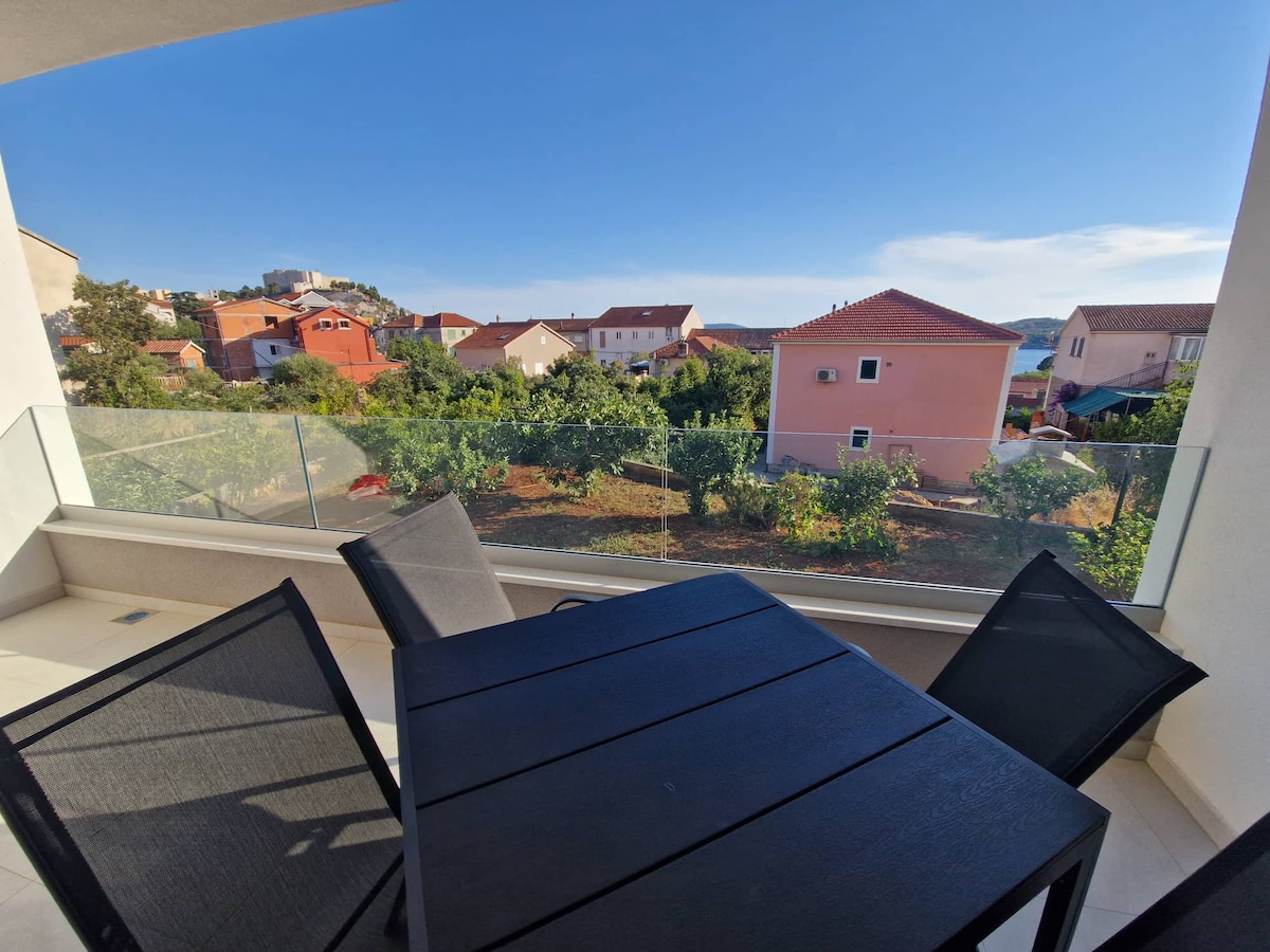 Apartman sa 1sobom i dnevni boravak, kuhinja, kupaonica sa tuš kadom, u dnevni boravak ima kauć, stol sa stolice, u kuhinji ima ploču za kuhanje, frižider, suge, kuhalo za vodom aparat za kavu. Apartman se nalazi na 1, 1km od centra grada Skradin. Kuća samo stoiećia prikladno za bijeg od gracki zivot.Ima u sklopu objekta roštilj.