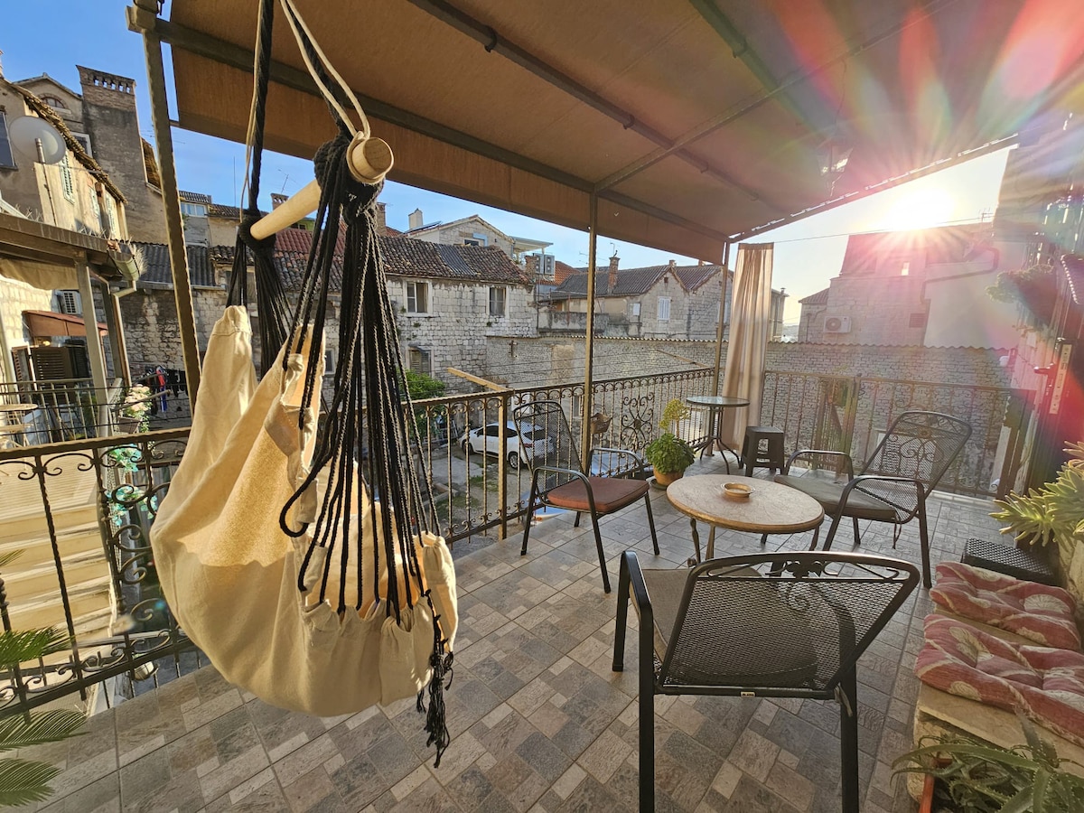 Novi moderni studio apartman nalazi se u centru Splita u autohtonoj kući na poslednjem spratu.Nalazi se na 5 minuta od Nacionalnog pozorišta i Dioklecijanove palate. Dobro došli u Split Dragi gosti, potrudićemo se da budemo dobri domaćini i da našim gostima prijatan boravak u Splitu.