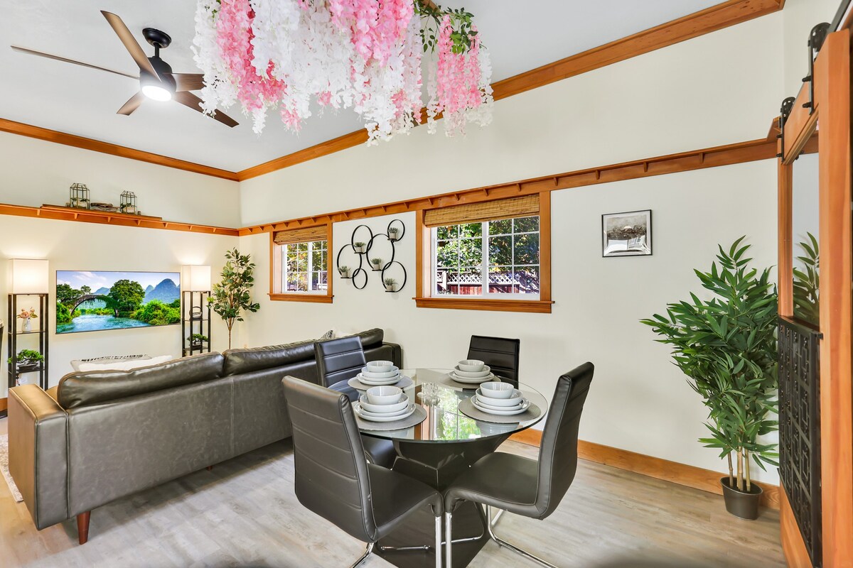 A Zen retreat couple’s and solo travelers will adore! This peaceful South Hill retreat is nestled in Spokane's highly-sought-after Manito neighborhood, on a tree-lined boulevard. Within walking distance to Manito and Canon Hill Parks, and a short drive to downtown, this 1-bed, 1-bath modern guest home is sure to please! Radiant floor heat, rainfall shower, 4k smart TV, ultra-fast WiFi, spacious patio and Japanese garden. Relax and unwind with all the comforts of home at the Manito Tea house.